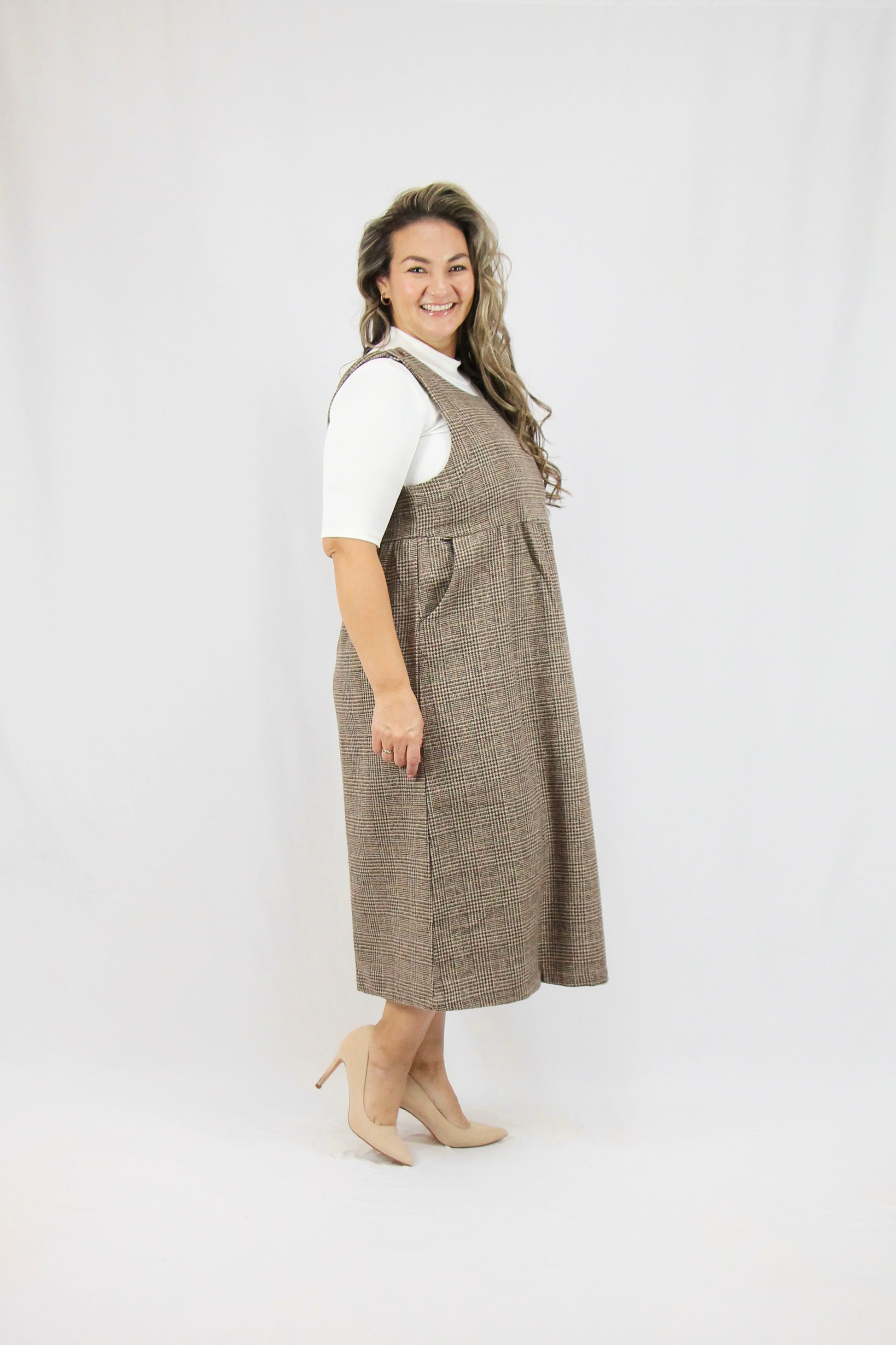 Meet the Belle Dress—where playful style meets practical comfort! This adorable plaid jumper rocks wide straps secured with snap closures for easy adjustability, plus handy front pockets to stash your stuff. The straight midi cut is flattering and versatile, perfect for any occasion. Best part? Layer it with one of our Halftees and you've got a cozy, nursing-friendly outfit that looks absolutely fabulous. Simple, stylish, and made for real life.