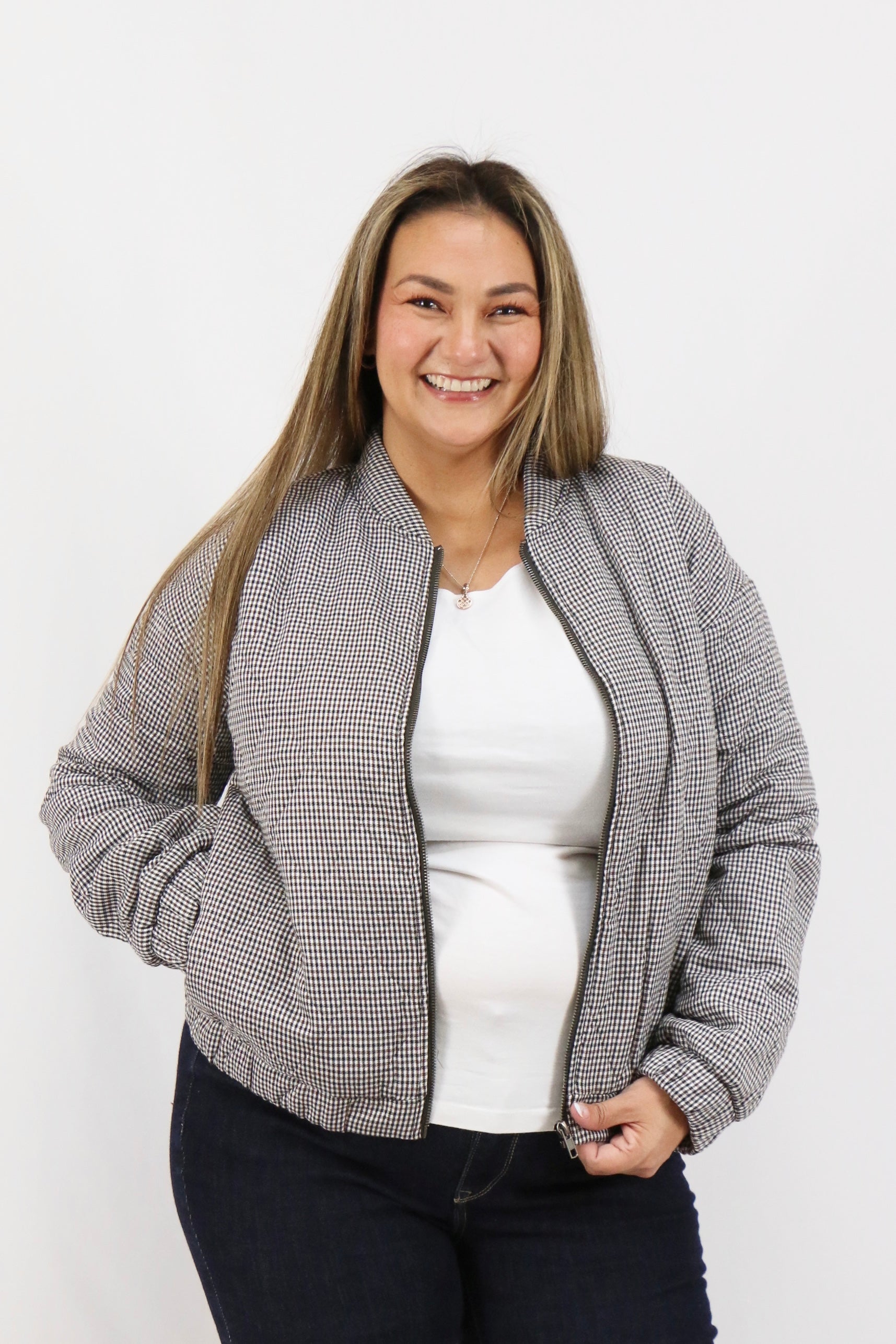 Meet the Cleo Jacket, your new go-to for cozy cool days. Featuring a cute quilted design in stylish black and brown gingham print, this bomber jacket zips up easily and offers handy side pockets to stash your essentials. The soft suede-like lining keeps you snuggly warm without sacrificing flair. Perfect for adding a playful touch to any outfit!