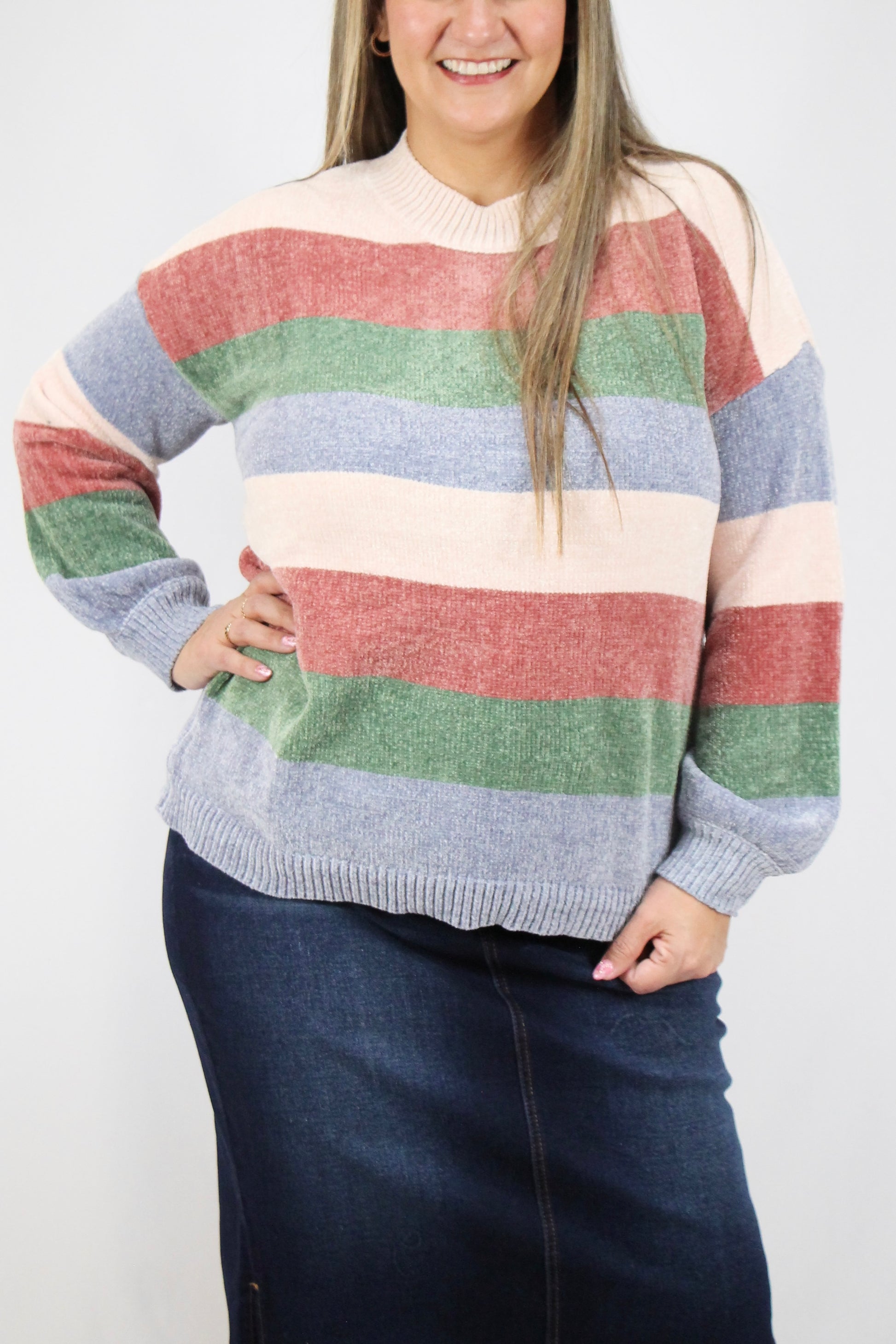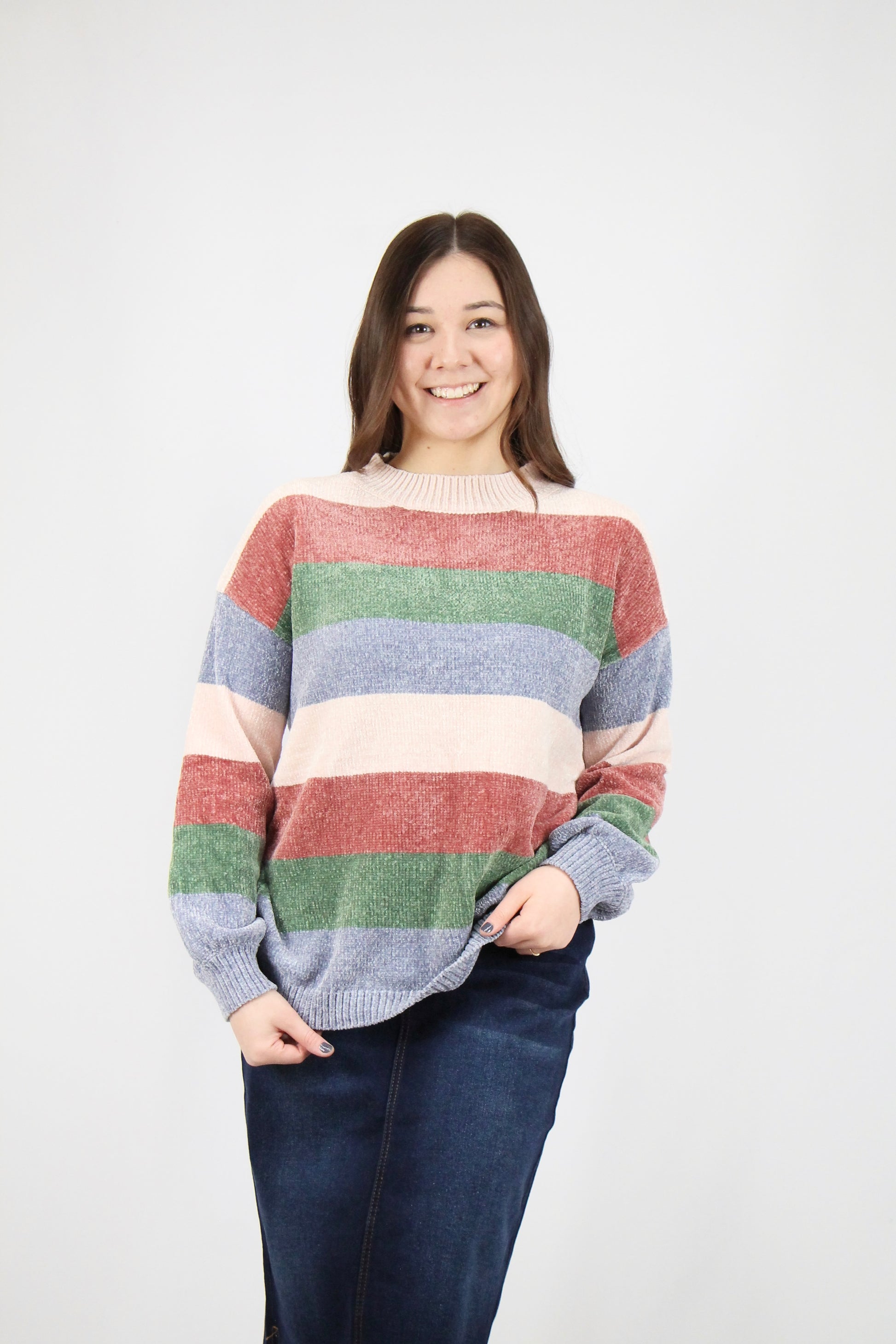 Wrap yourself in pure comfort with the Kenny Top, a delightfully cozy sweater that's as fun as it is functional. Featuring bold, vibrant stripes in a velvety soft chenille knit, this piece brings instant personality to your wardrobe. The generous loose fit makes it perfect for layering or lounging, while the thick, quality fabric keeps you warm and snug. Whether you're heading out for casual adventures or settling in for a relaxed day at home, the Kenny Top is your go-to for effortless style with serious comfort credentials.