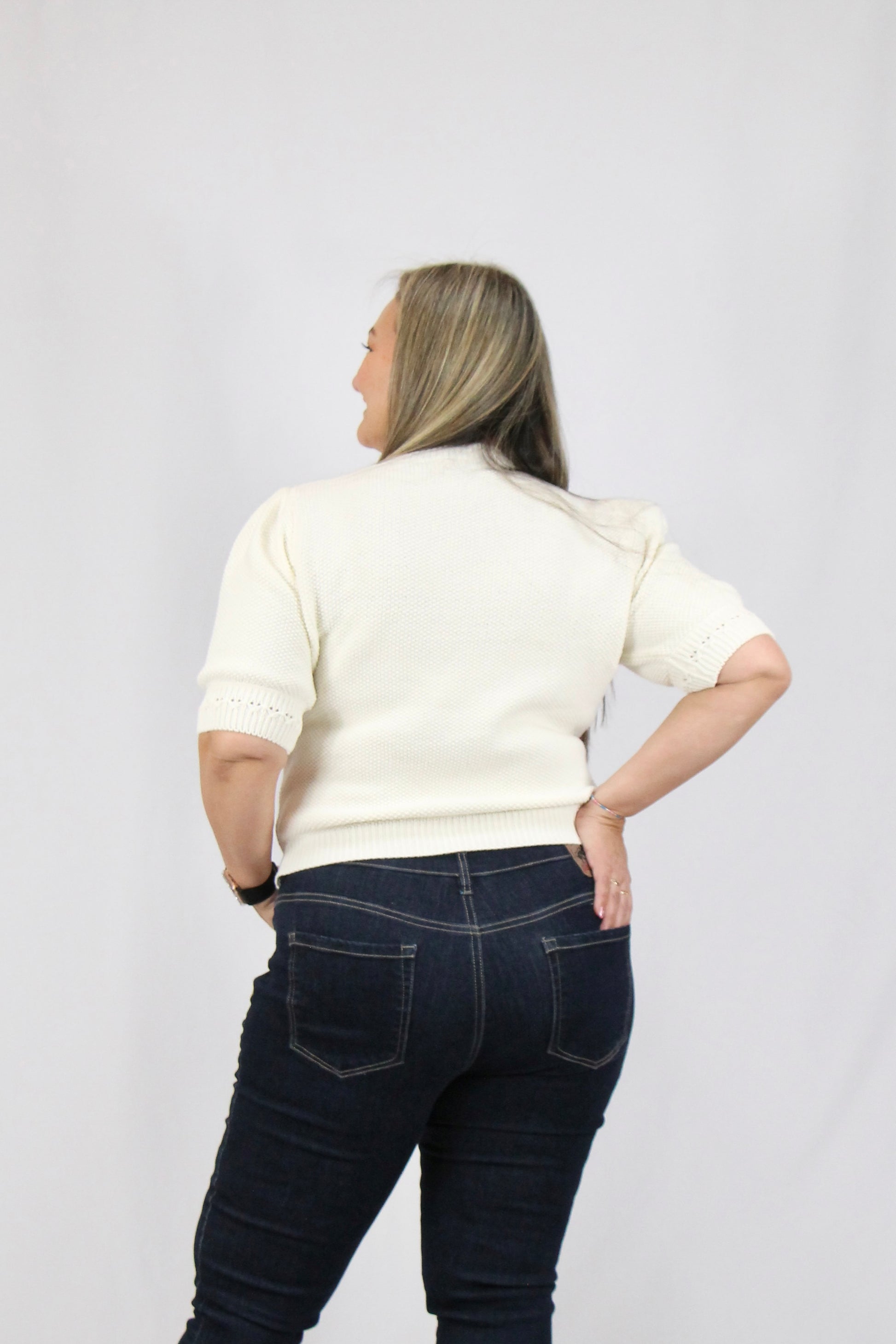 The London Top is your go-to piece for effortless versatility. This adorable cable knit sweater features delicate feminine details and a flattering cropped silhouette that works beautifully whether you're dressing it up for a night out or keeping it casual with your favorite jeans. The short sleeves offer the perfect balance of comfort and style, making it an essential addition to any wardrobe. Layer it, tuck it, or wear it solo—this charming top adapts to your mood and occasion with ease.