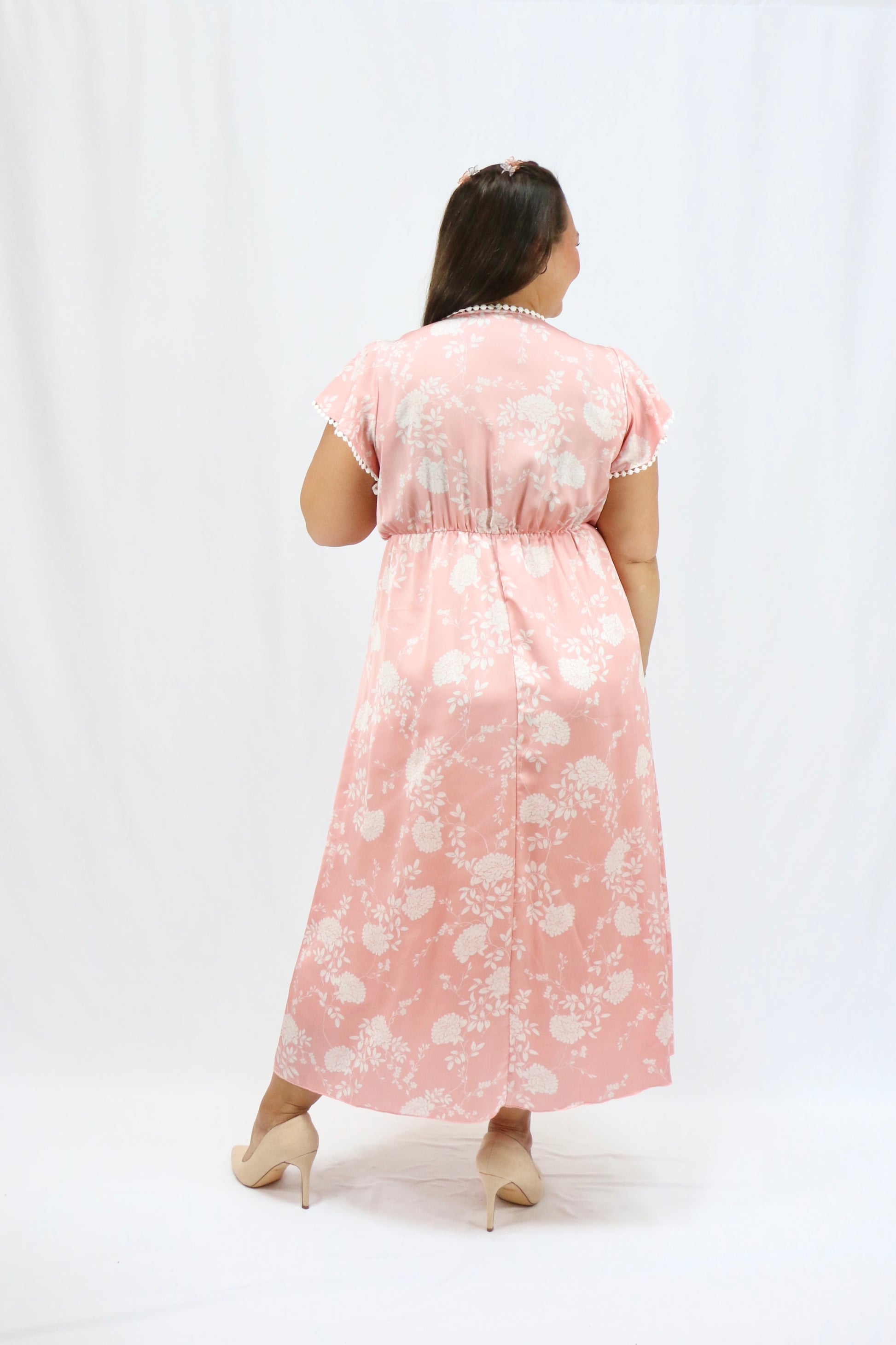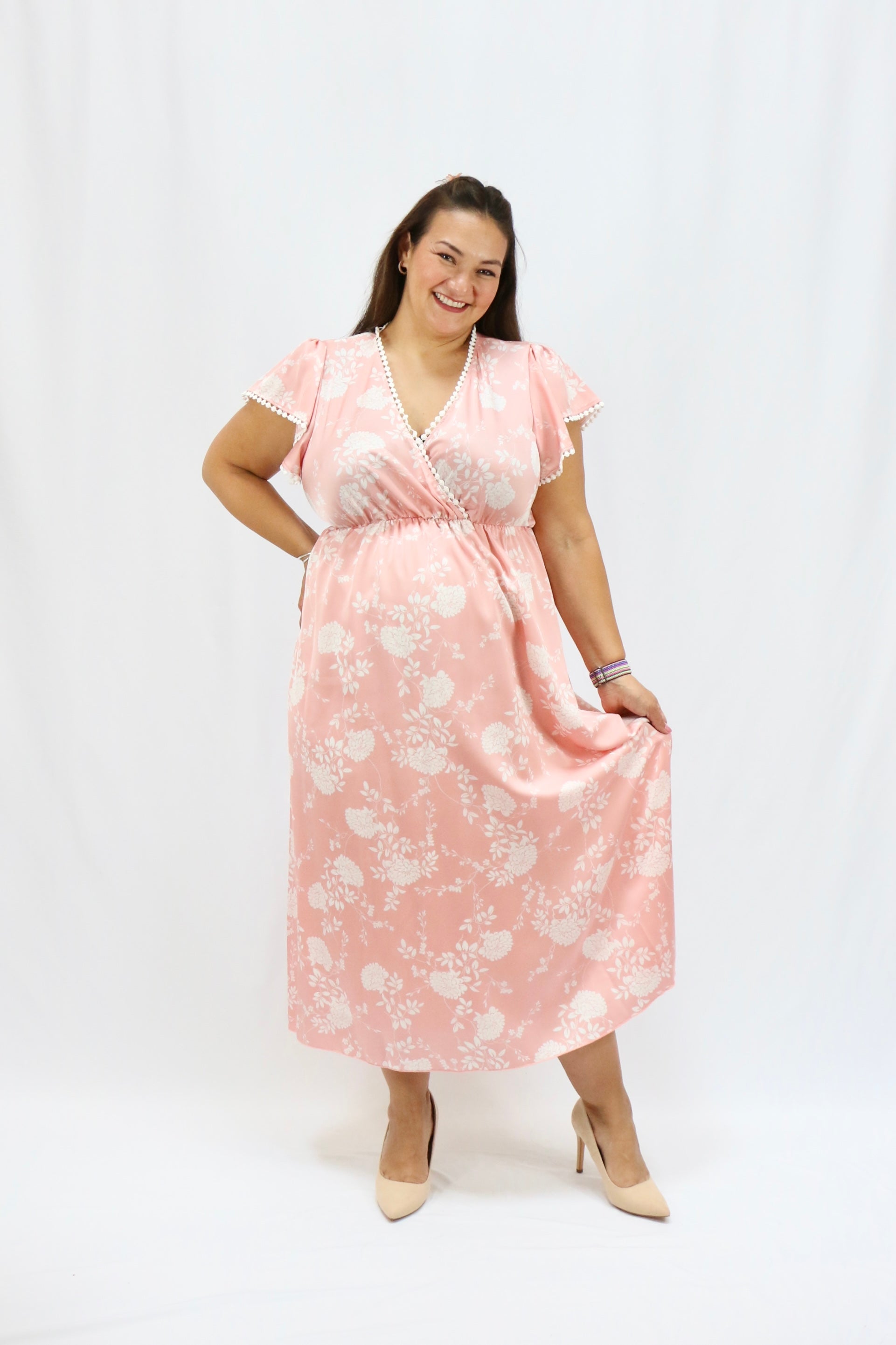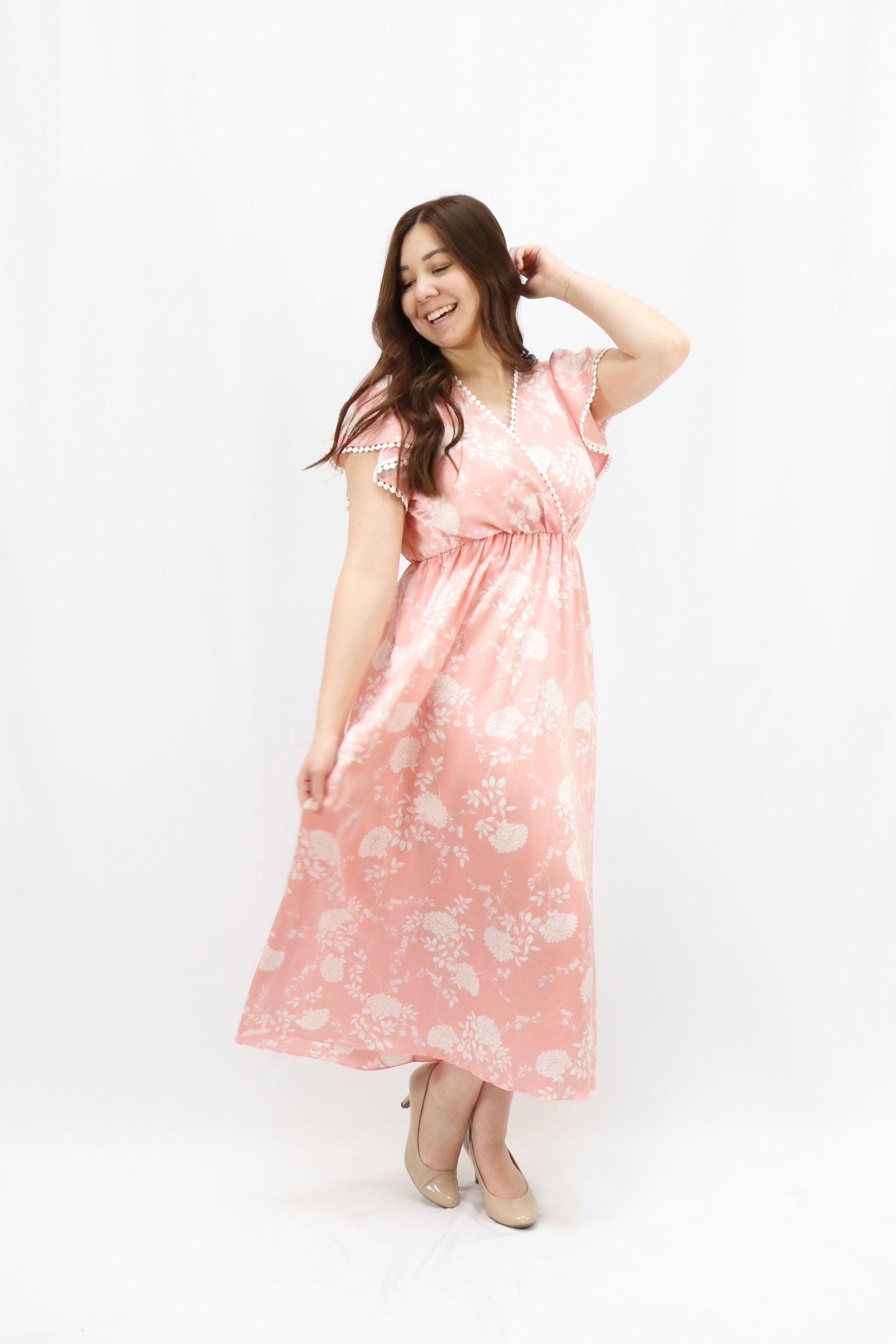 Get the best of both worlds with our Lucille Dress. The classic feel is elevated with a subtle sheen and adorable crocheted details on the neckline and sleeves. And let's not forget the beautiful pink and white floral print - a must-have for your wardrobe!