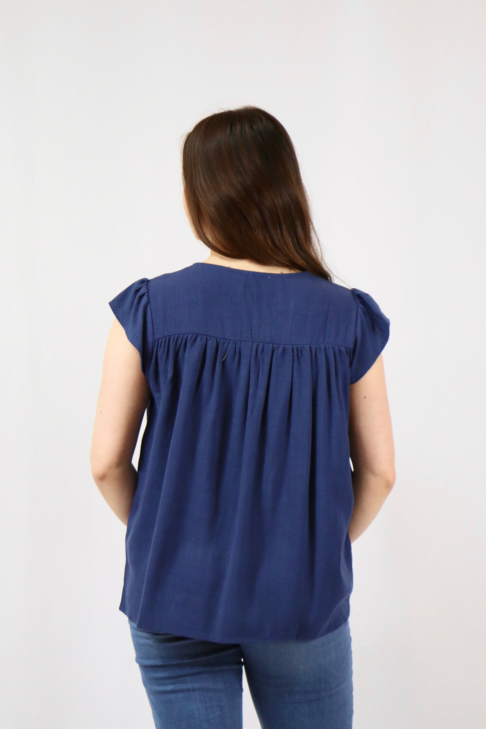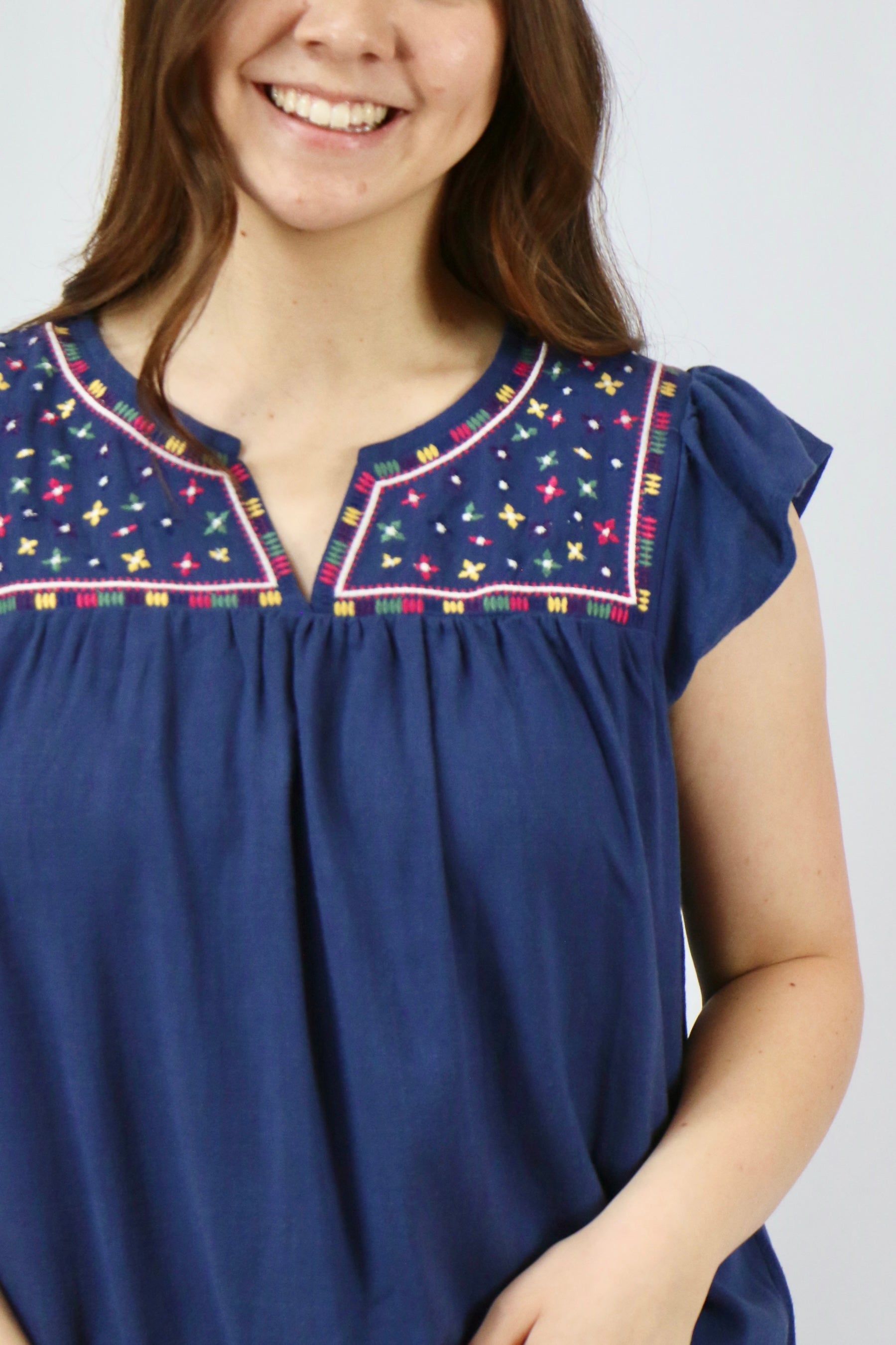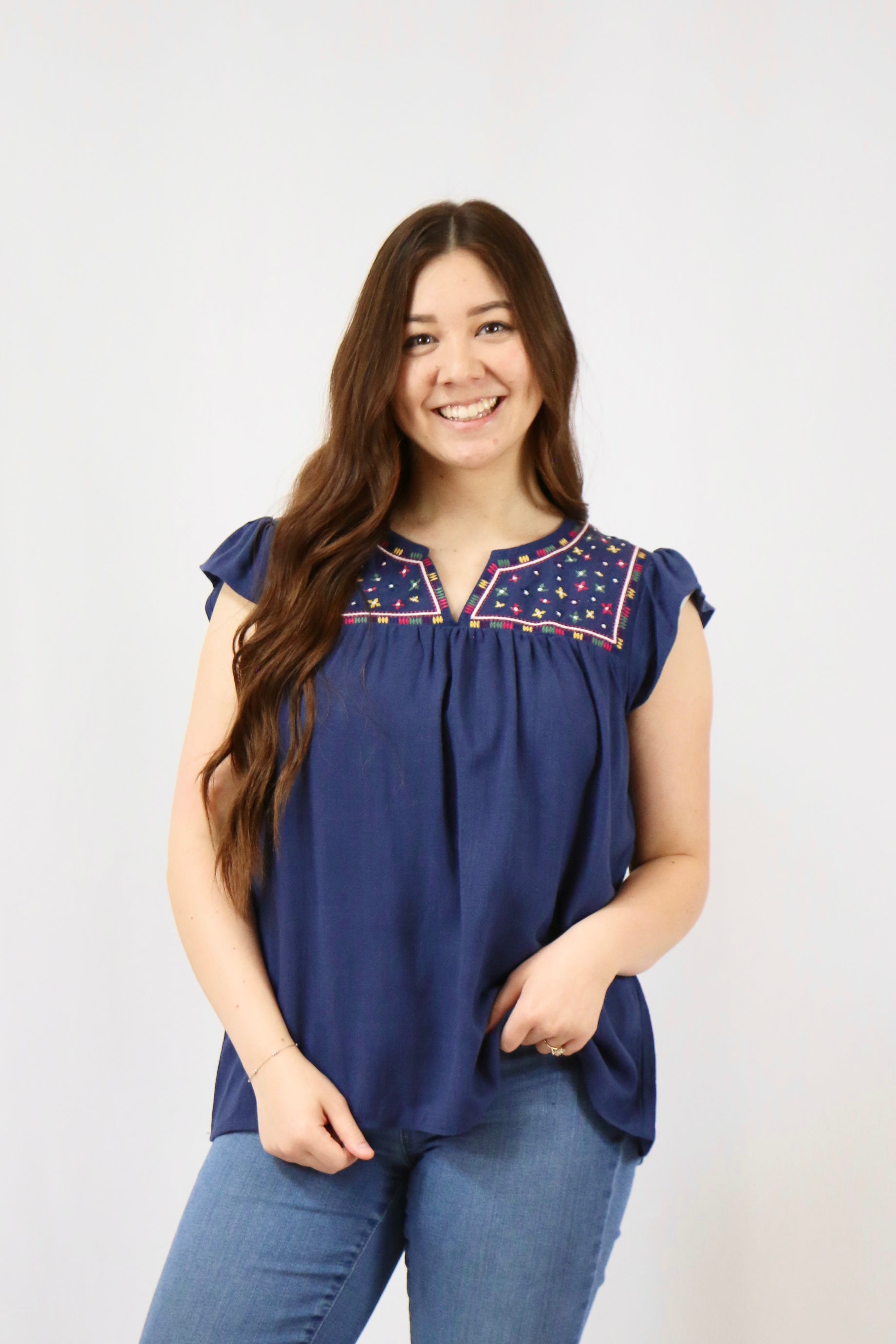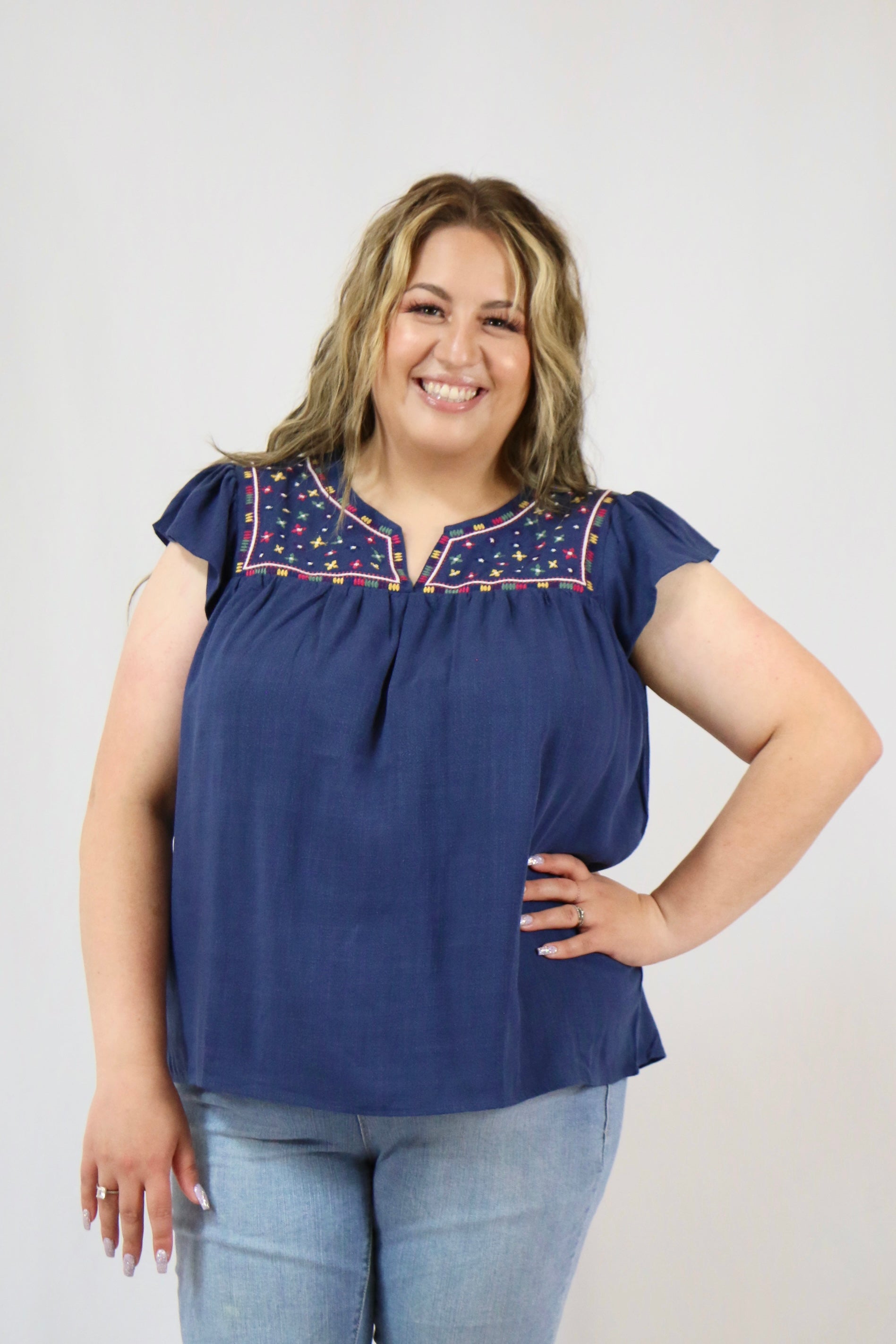 The Marcia Top combines comfort and charm with its super soft fabric and loose fit. Featuring a playful V-neck and colorful embroidery on the yoke, it adds a cheerful touch to your outfit. The ruffle sleeves bring a fun, flirty vibe, making this top perfect for brightening up any day.